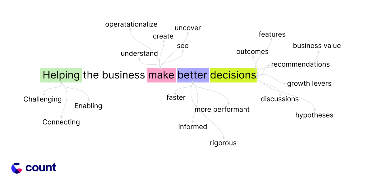 In data, though, it feels like we’re still trying to figure out our role. Yes, we’d all say our goal is to improve “decision-making within the business” but this feels so high-level and abstract as to be useless and leaves the role of the data team open to interpretation both by us and the wider organizations we work with.