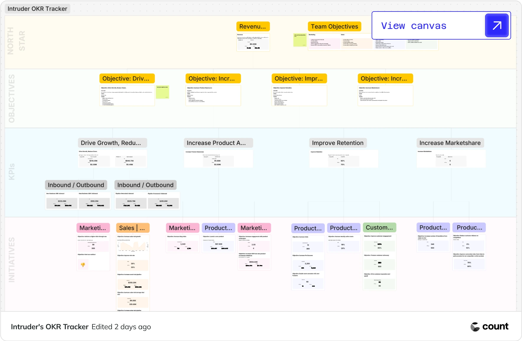 Explore Intruder's OKR canvas in our Gallery then replicate in your own Count Workspace.