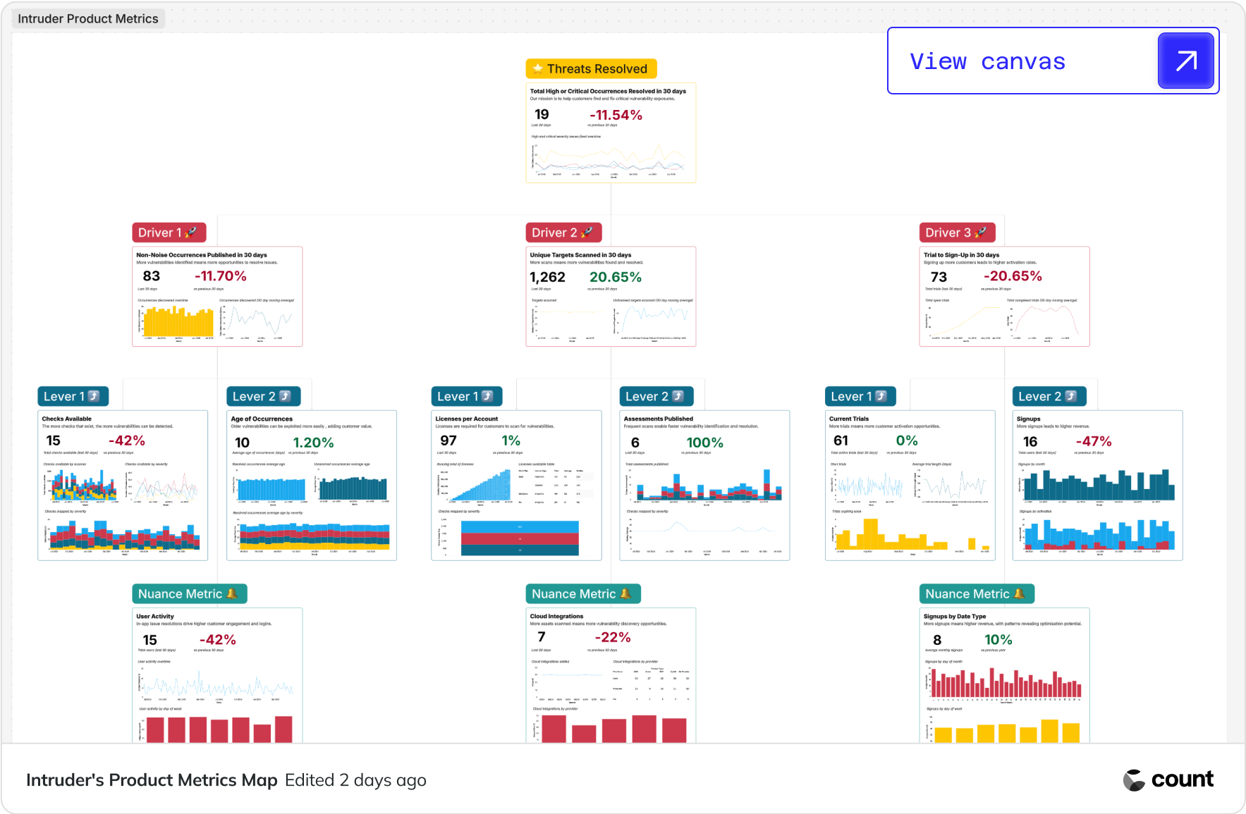 Explore Intruder's product metrics canvas in our Gallery then replicate in your own Count Workspace.