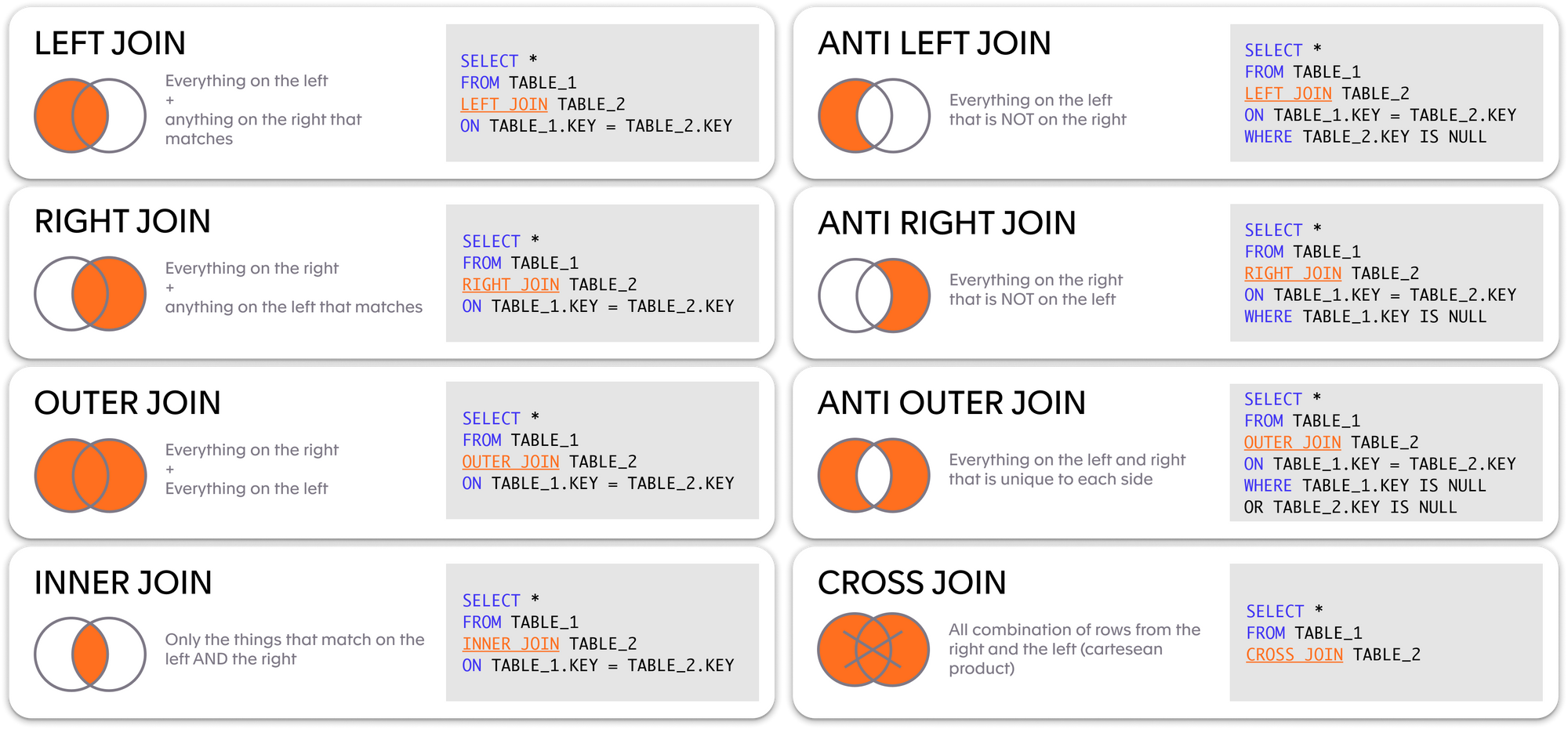 But there are scenarios where chaining together a string of LEFT JOINS might be more effort, and more computationally expensive than you can afford. For those scenarios, we can look to some of the more overlooked JOIN types:
