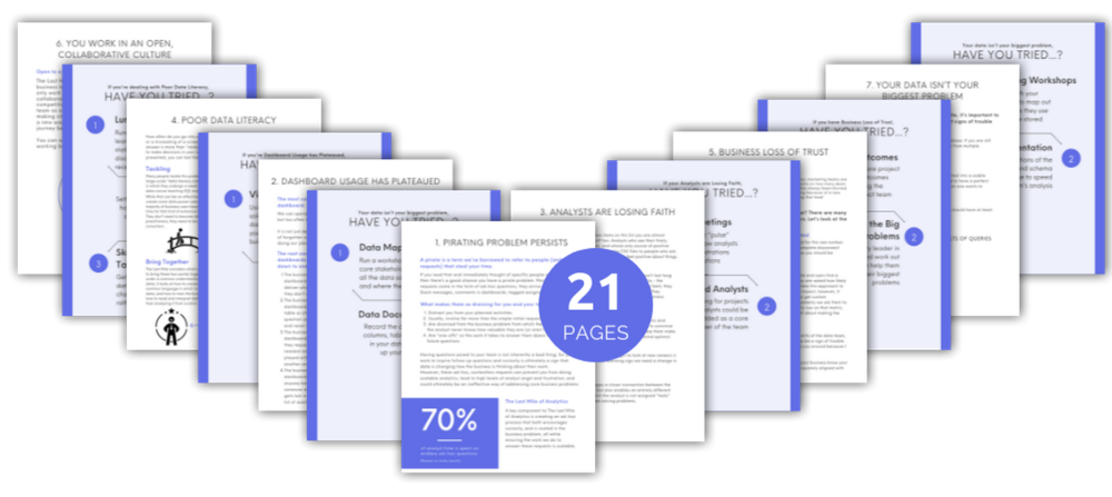 The Last Mile of Analytics refers to the space between the data team and the business teams; it is the moment between someone looking at your report or dashboard, and the action they take as a result; it encompasses all the back and forth questions we get about ‘what this graph means’ or ‘what data is included there’; it’s where we discuss the problems of our stakeholders, and how we can help solve them.