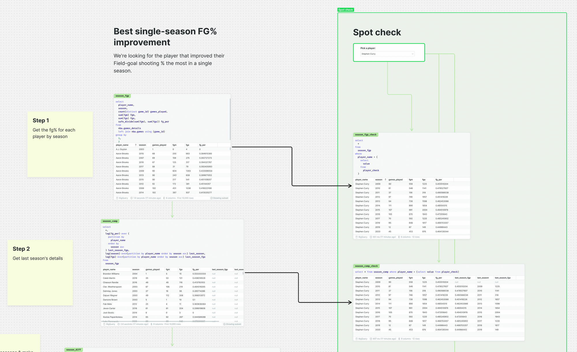 When you want to demonstrate that your analysis is correct, showing a stakeholder all the dbt tests it's passed doesn’t have much relevance. Instead, try filtering your analysis or data model for a single customer, client, or day.